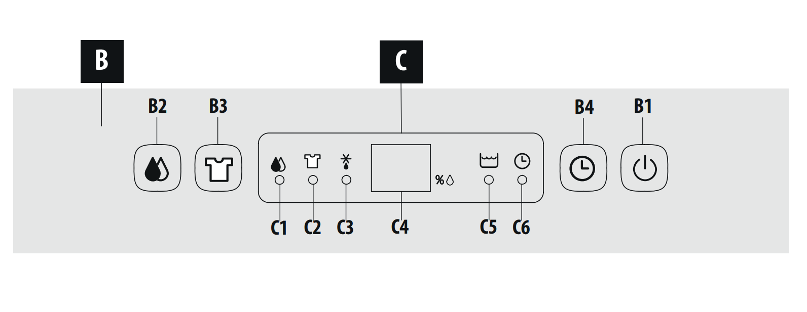 B3. Nút chế độ sấy (được khuyến nghị sử dụng cho những môi trường đặc biệt ẩm ướt hoặc để làm khô quần áo nhanh hơn)