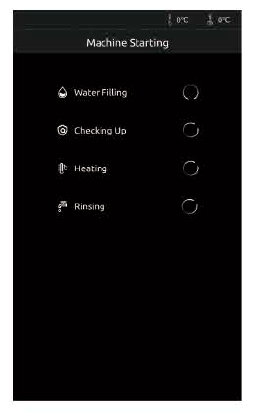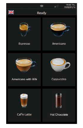 Bước 4: Khi các cài đặt mặc định đã hoàn tất máy sẽ tự trở về màn hình menu chính và sẵn sàng để pha cà phê.
