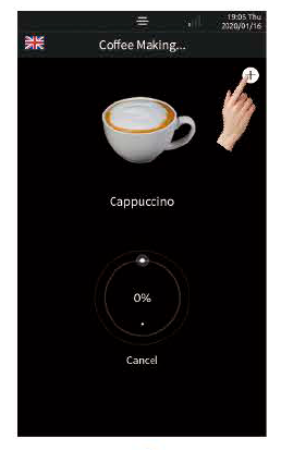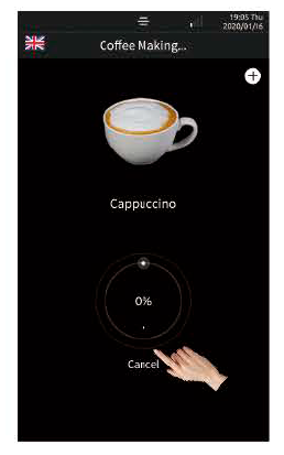 Bước 3: Khi đang pha, có thể nhấn “Cancel” để dừng pha cà phê ngay lập tức.
