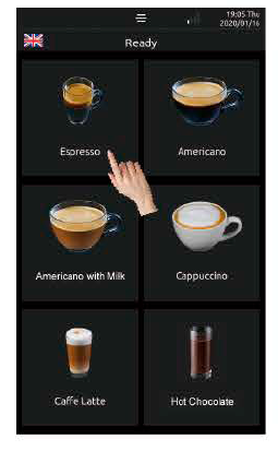 Bước 1: Nhấn “Espresso”, máy sẽ bắt đầu pha cà phê.