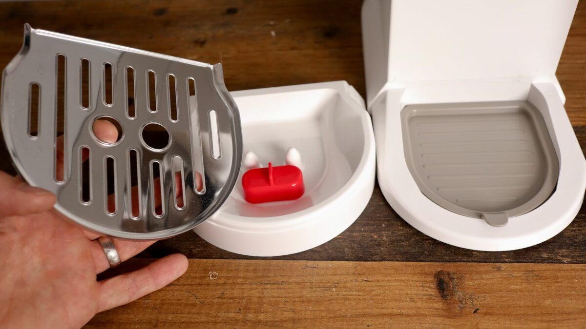 - Phần mặt trên của Dedica Duo là khay đặt tách có thiết kế bề mặt gồ ghề nhẹ, có thể ấm lên khá rõ. Tuy nhiên, diện tích khay khá hạn chế và mức nhiệt này vẫn chưa đủ để làm nóng tách một cách hiệu quả. Vì vậy, nếu muốn giữ nóng tách, bạn nên làm nóng tách trước bằng cách tráng hoặc đổ nước nóng vào tách trước khi pha cà phê.